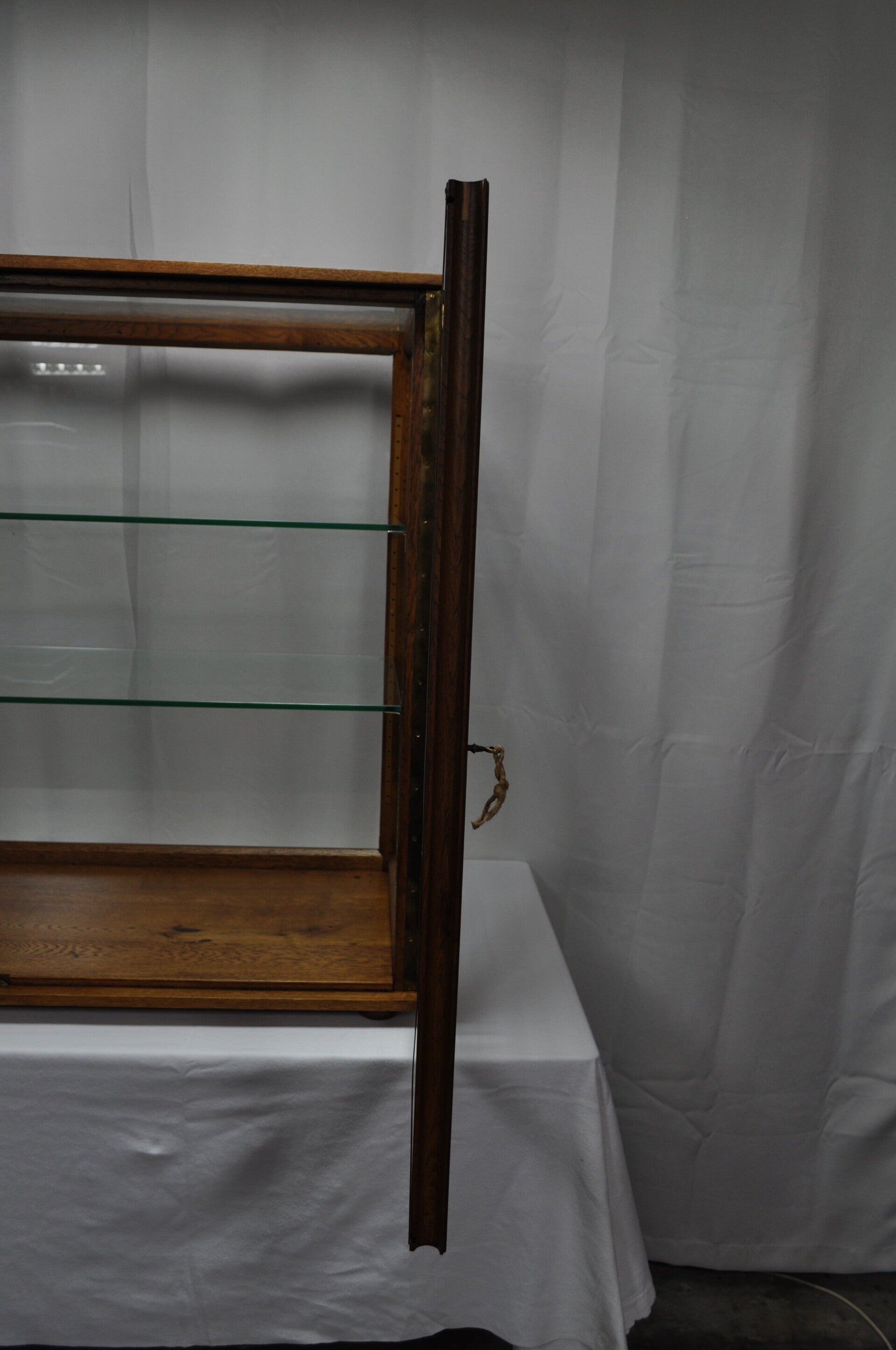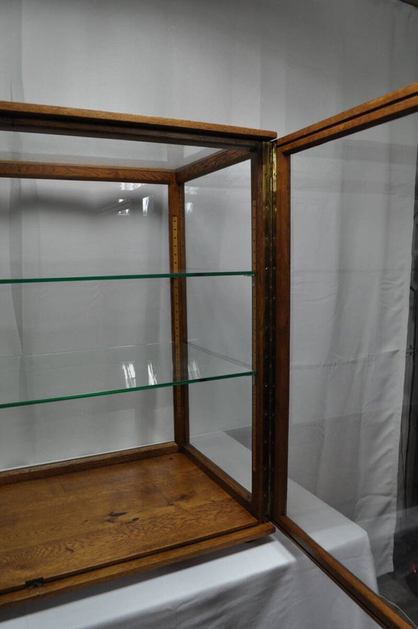 Vitrine de balance en chêne transformée en vitrine d'exposition