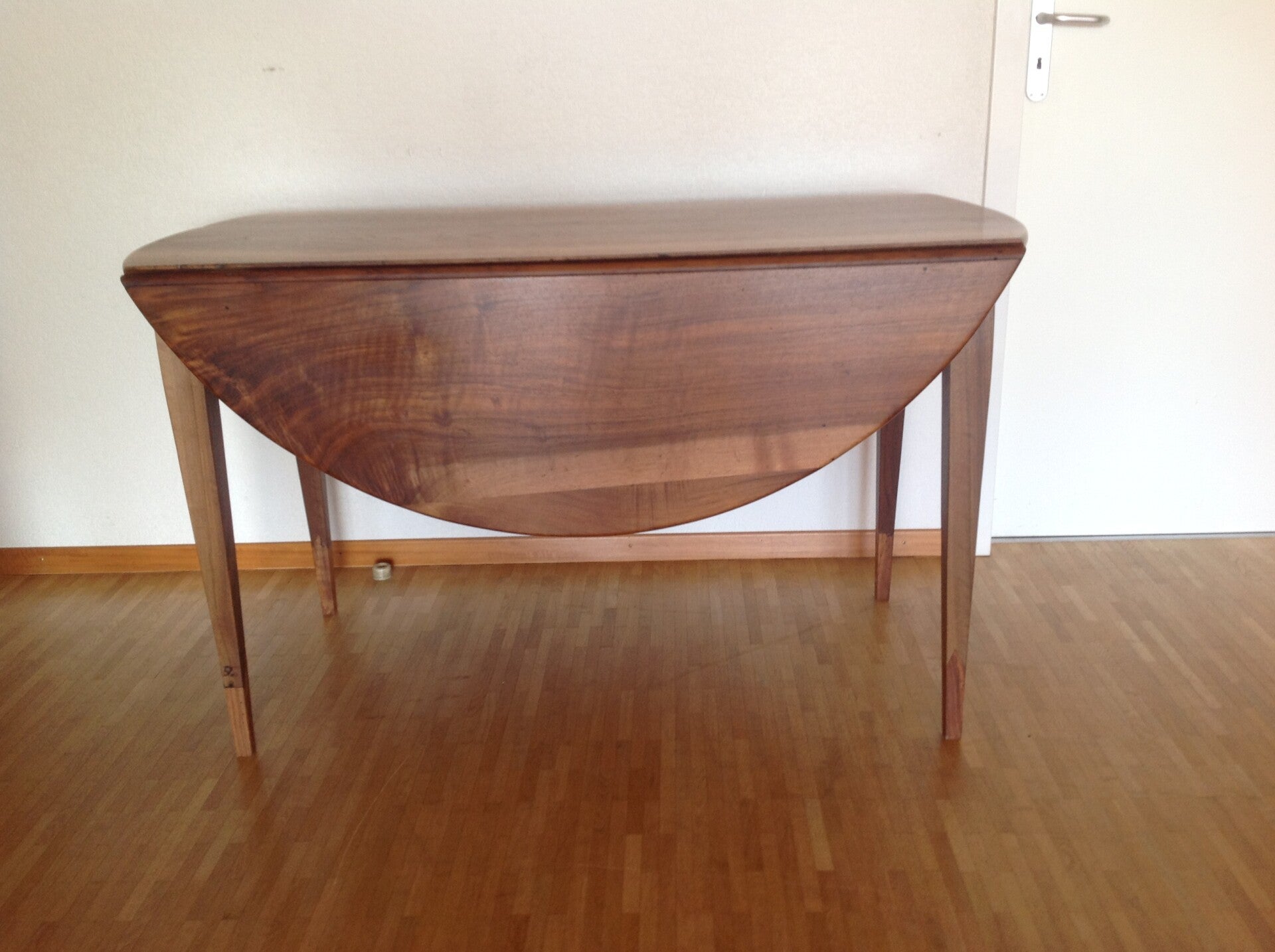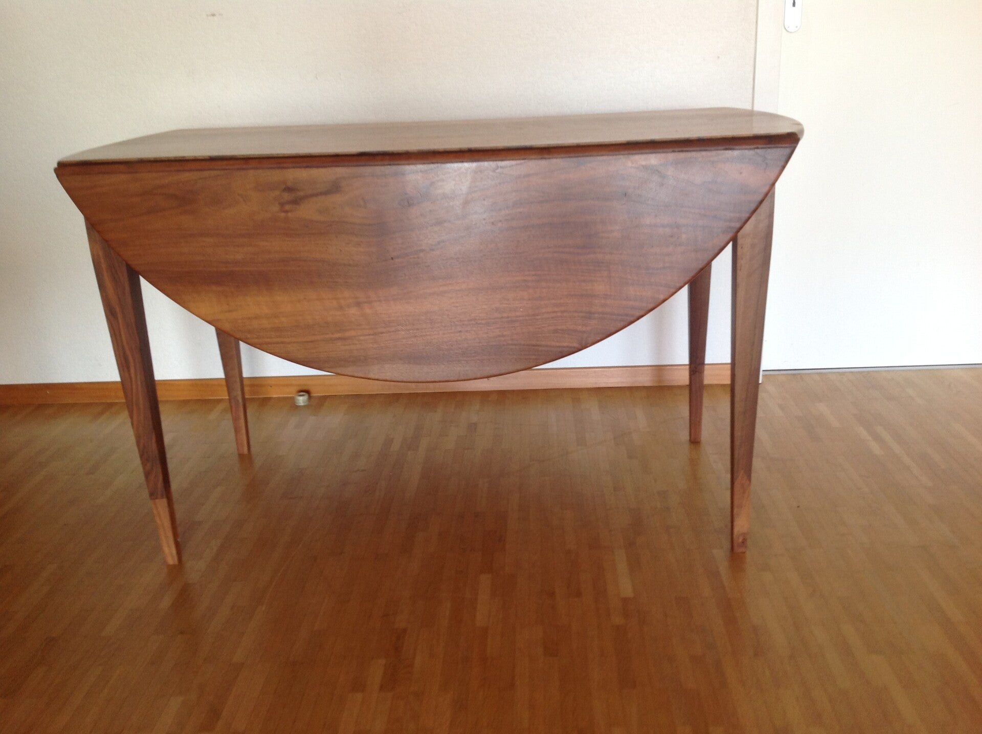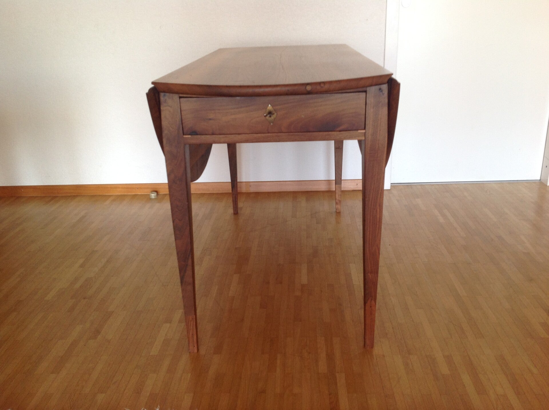 Table à battant Directoire en noyer restaurée. Une serrure ne fonctionne pas. Hauteur 76 cm