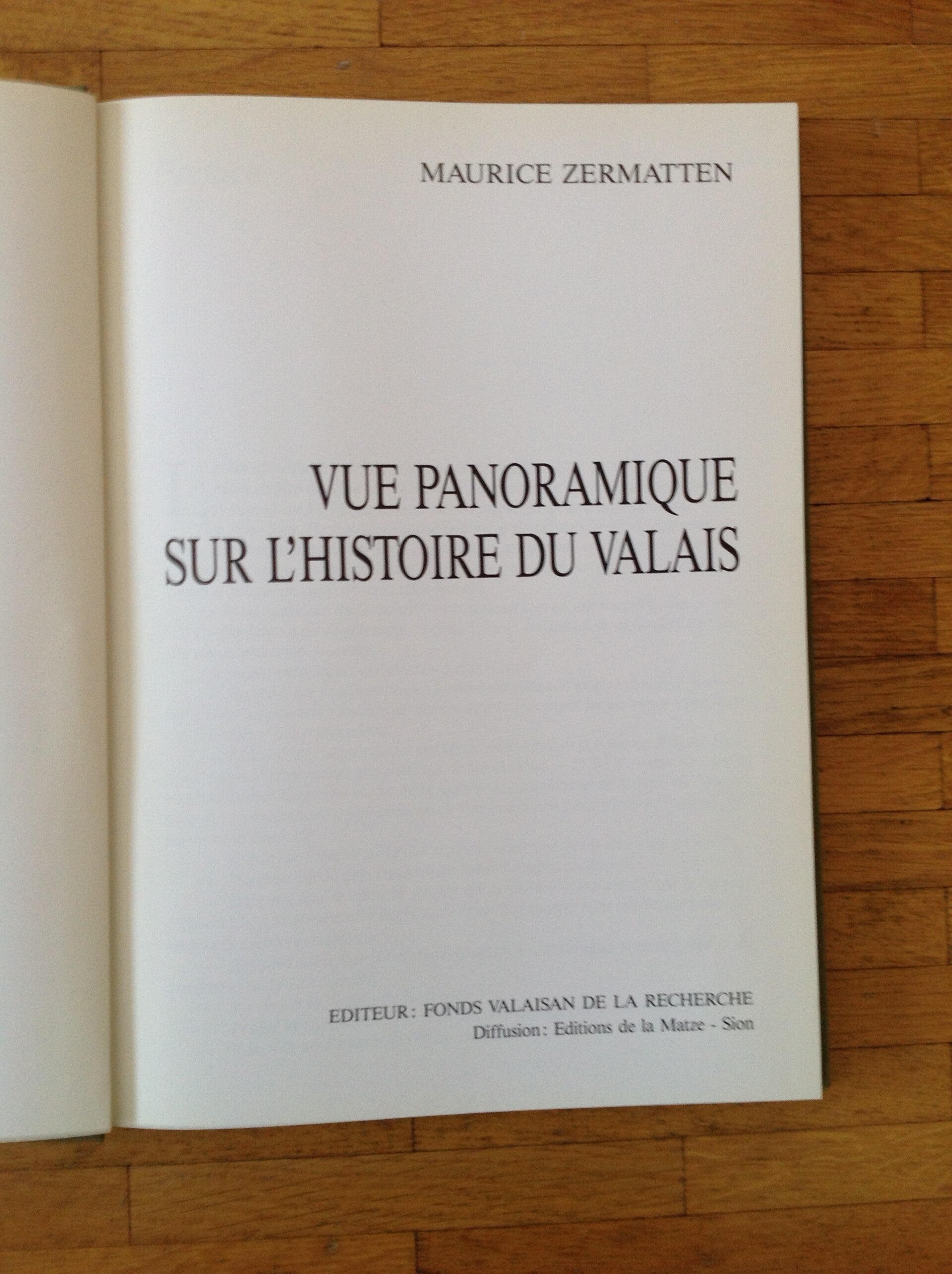 Vue panoramique sur l'histoire du Valais, Maurice Zermatten, Fonds valaisan de la recherche, Sion, 1987, Imprimerie Gessler SA à Sion