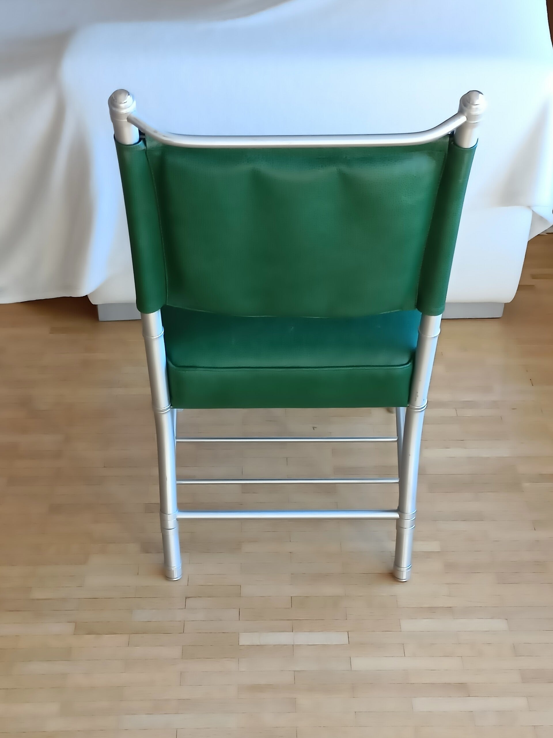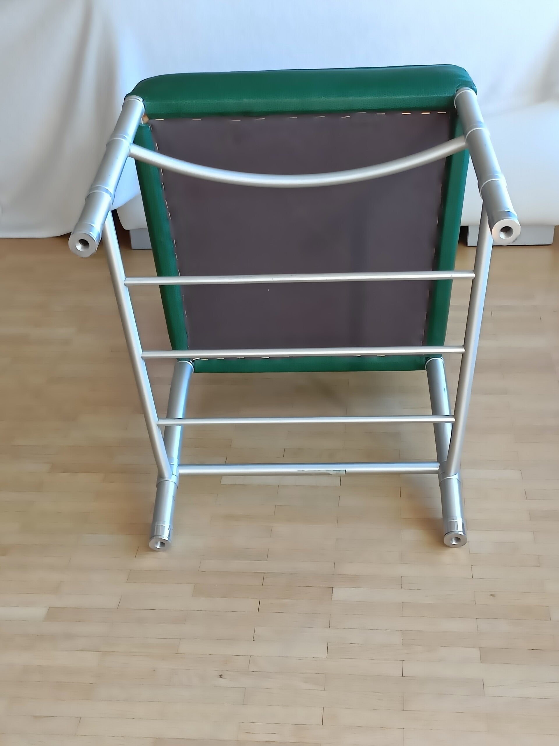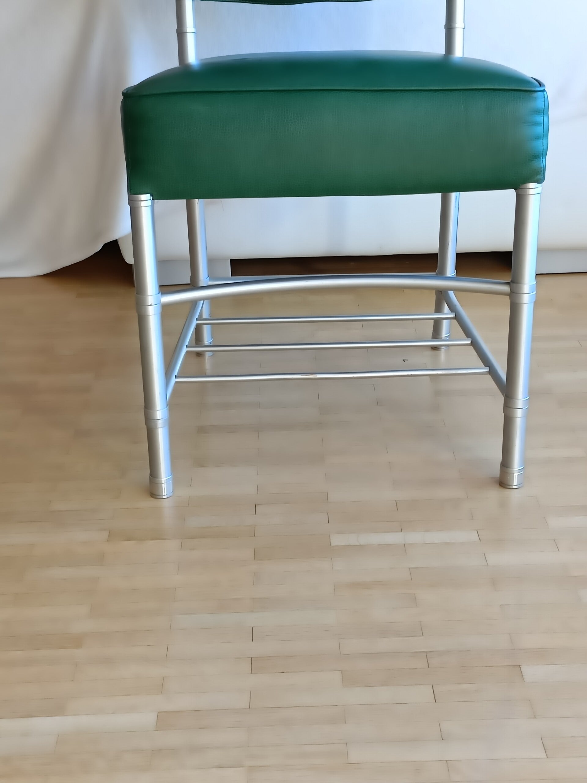 4 chaises Warren Mc Arthur en aluminium recouvertes de cuir vert Réédition