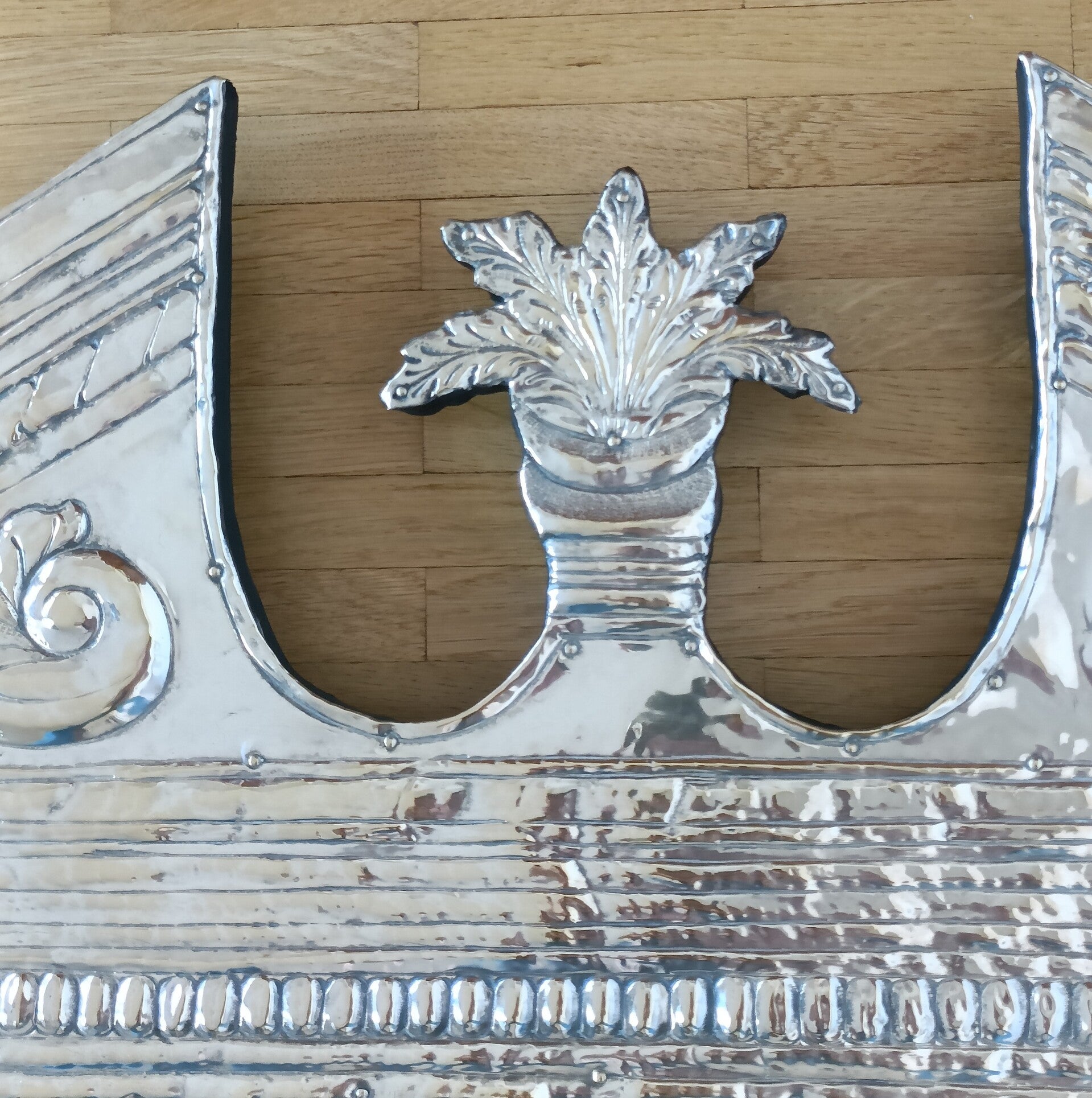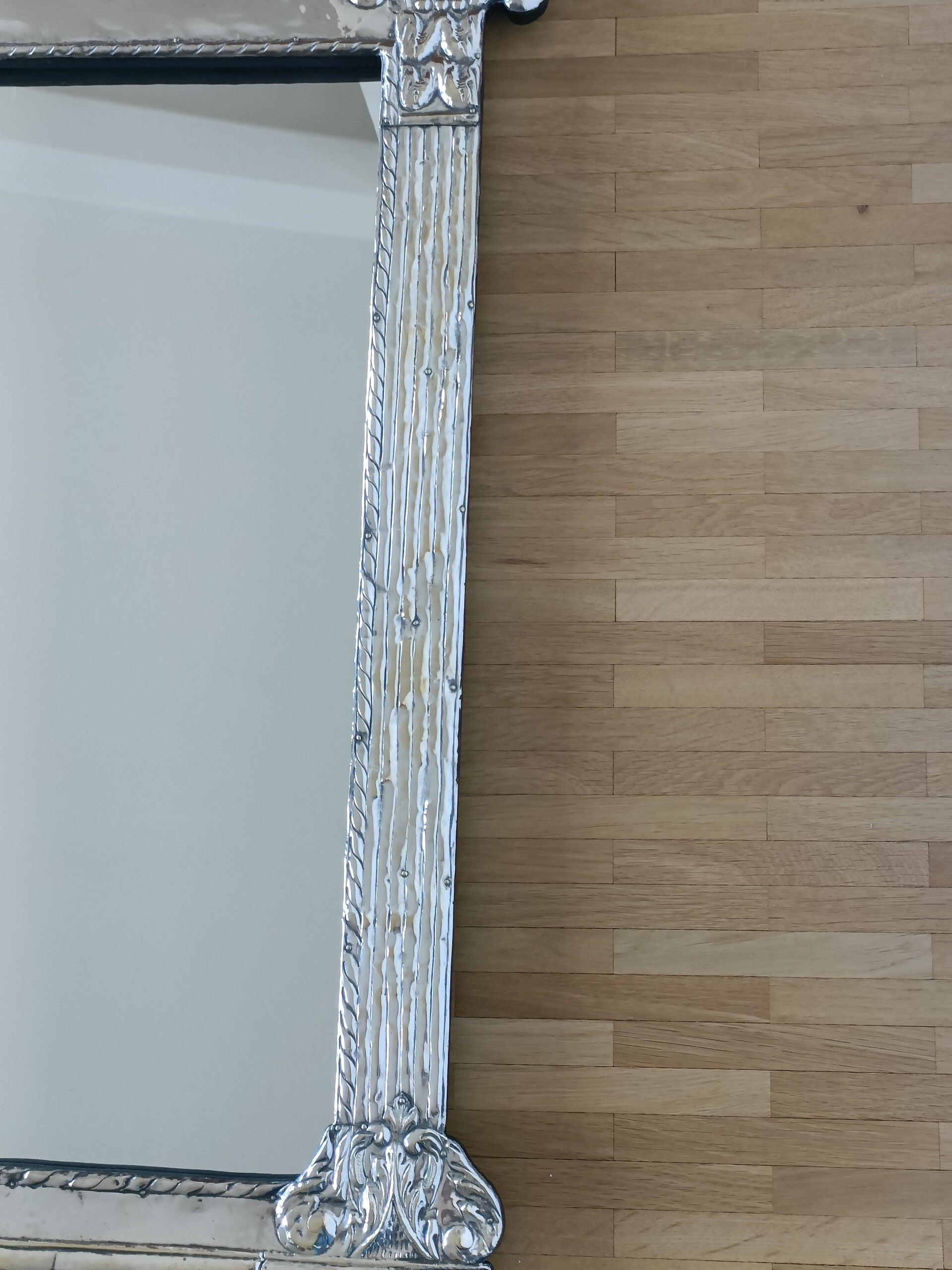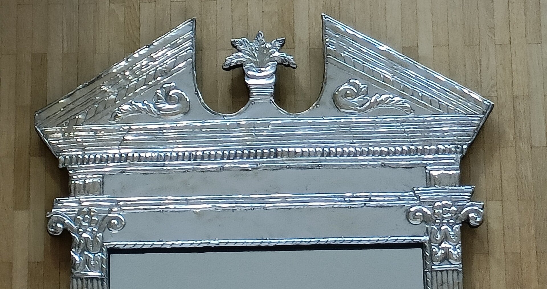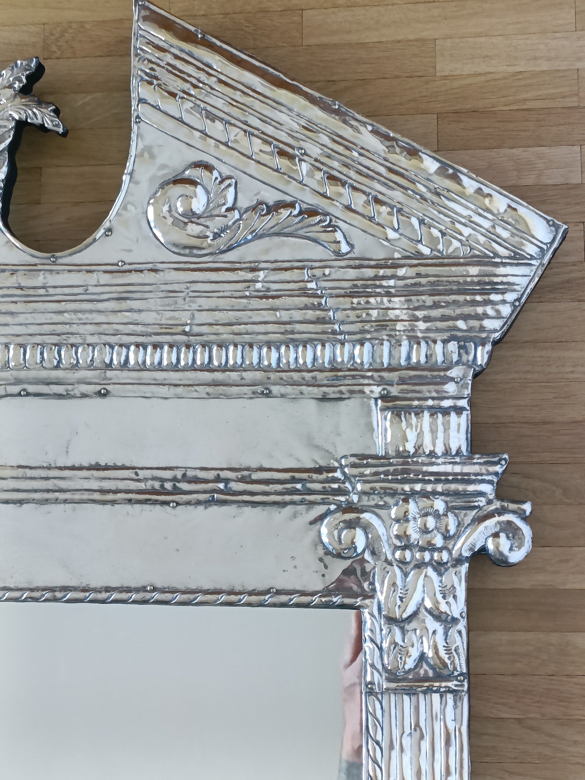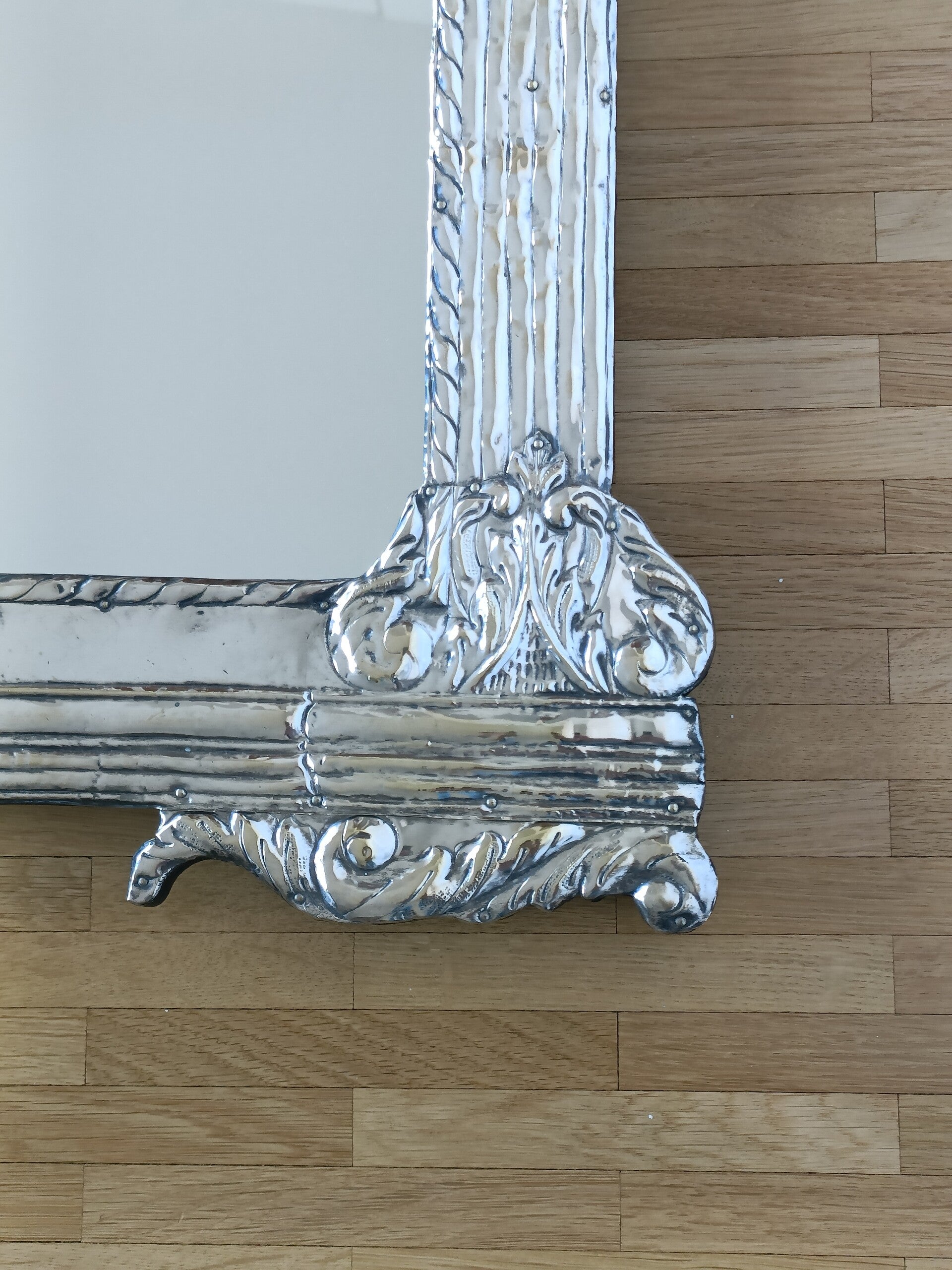 Miroir mural néoclassique en métal Art Déco. En bon état.