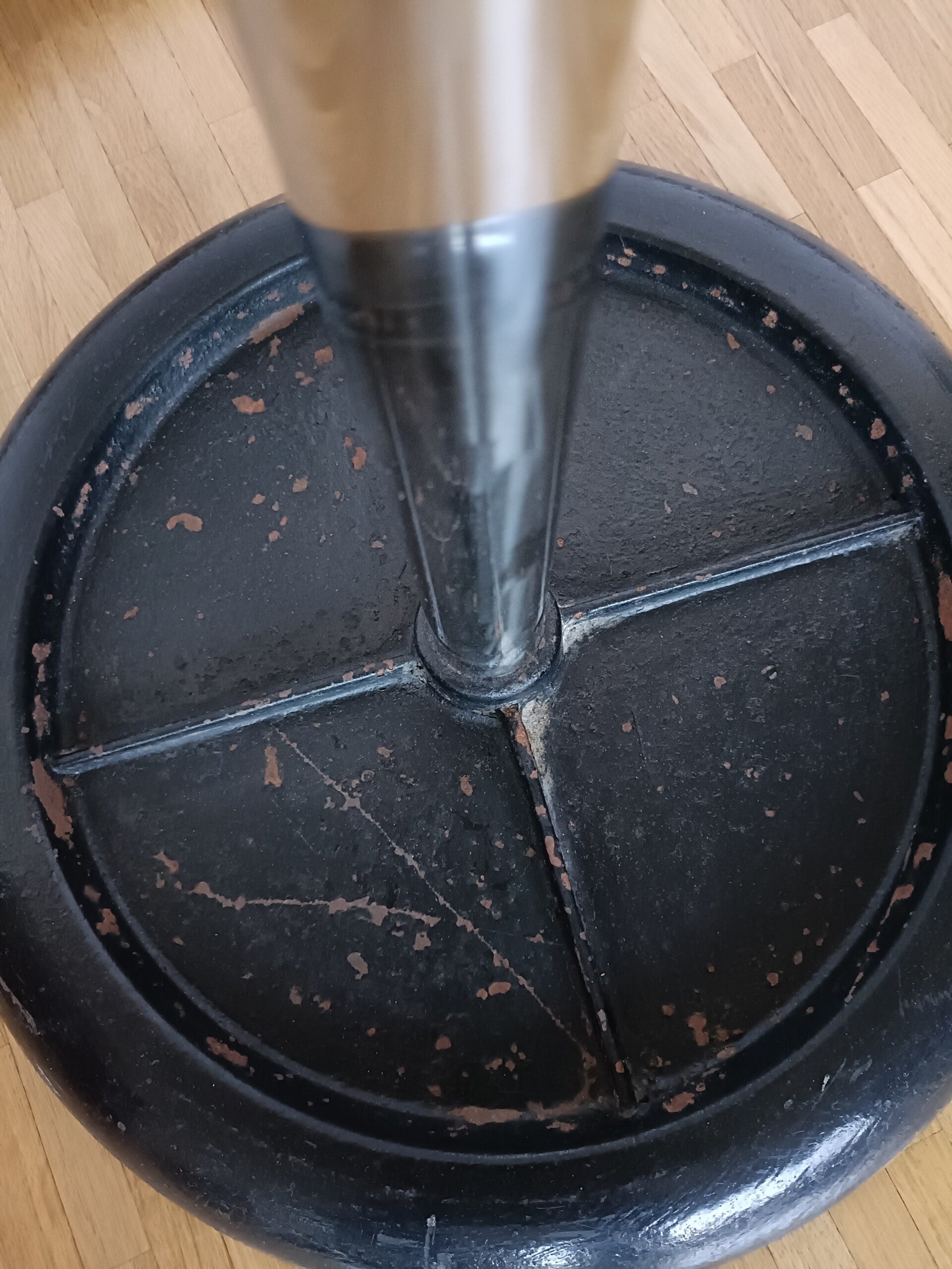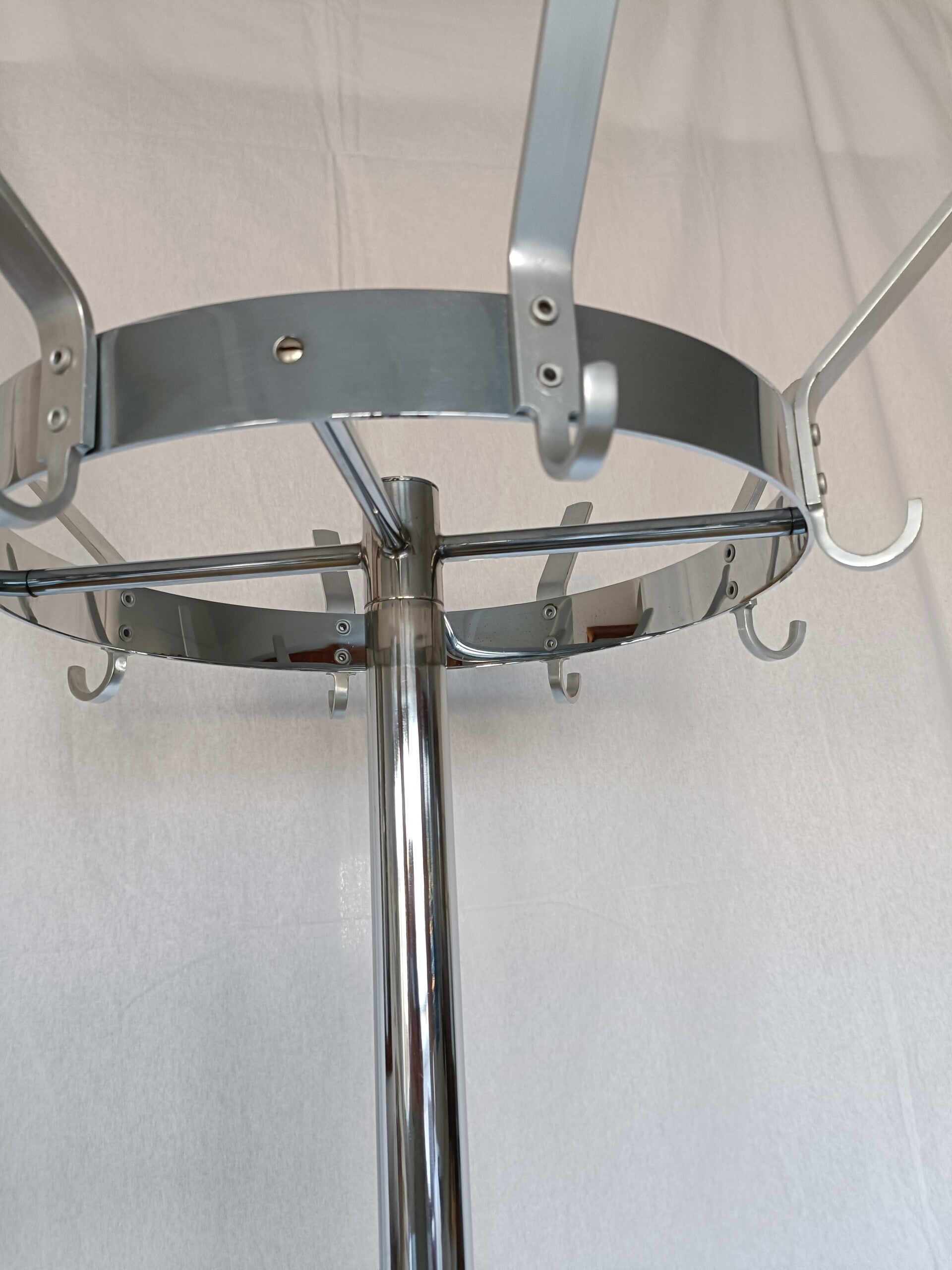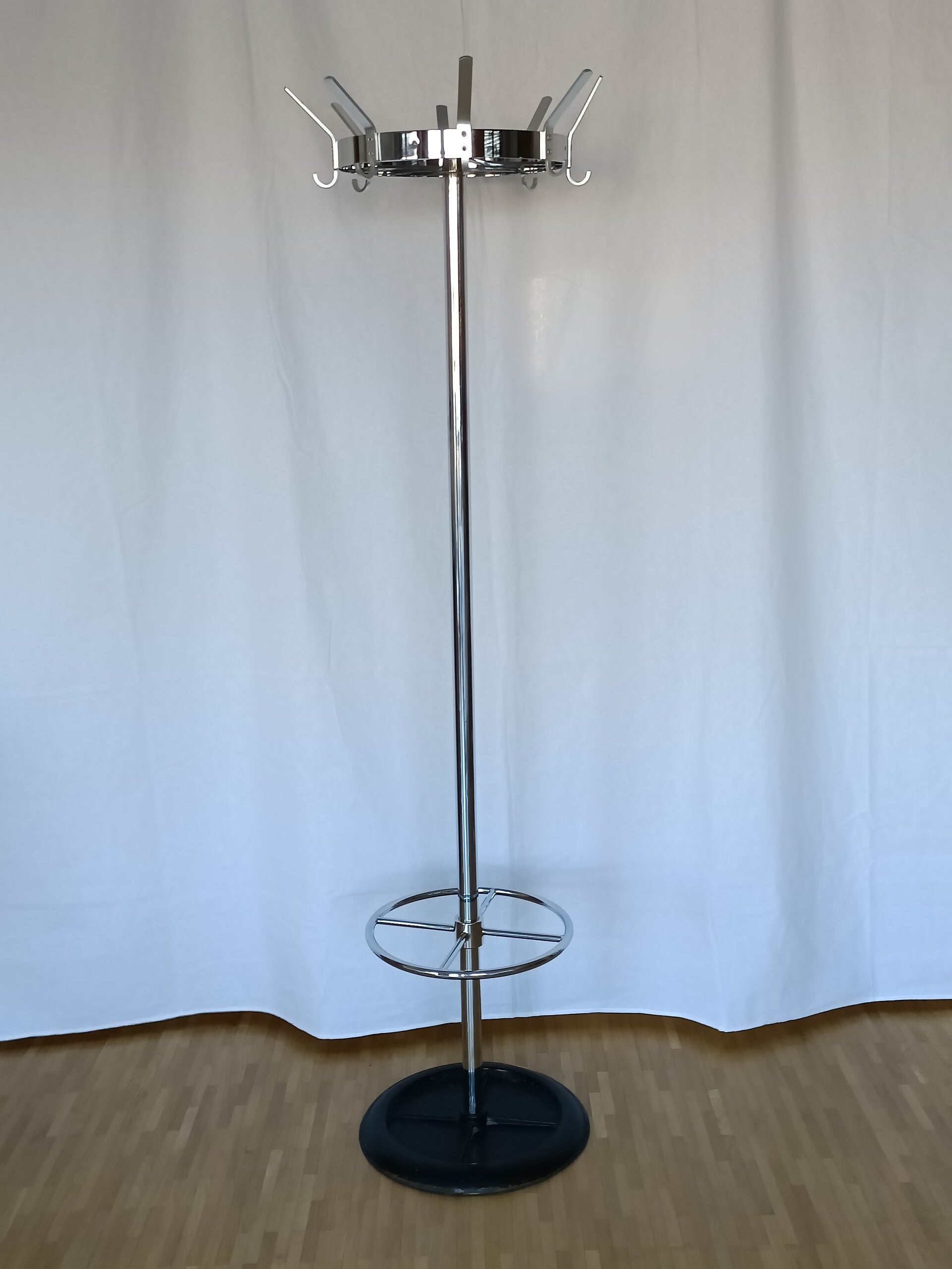 Porte manteaux sur pied chromé, pied en fonte, 8 patères et porte parapluies
