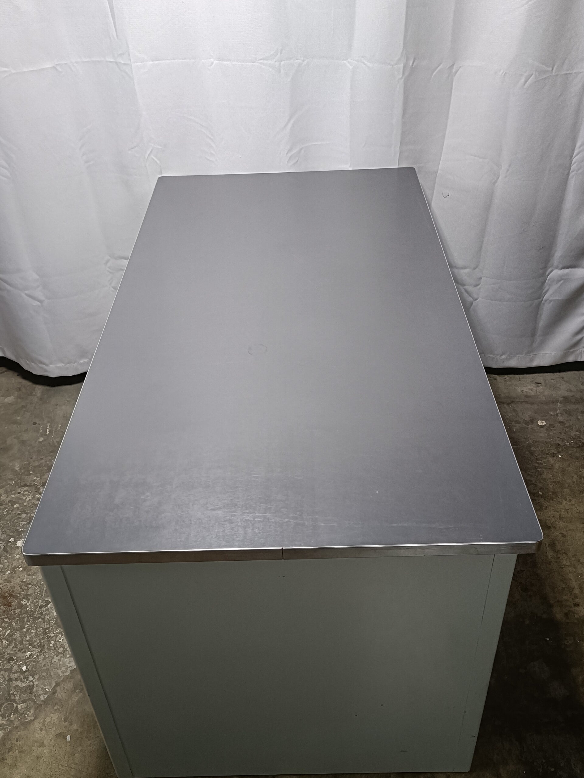 Bureau métallique, 2 corps, 6 tiroirs. Une serrure est à changer mais est fournie. Env. 1950