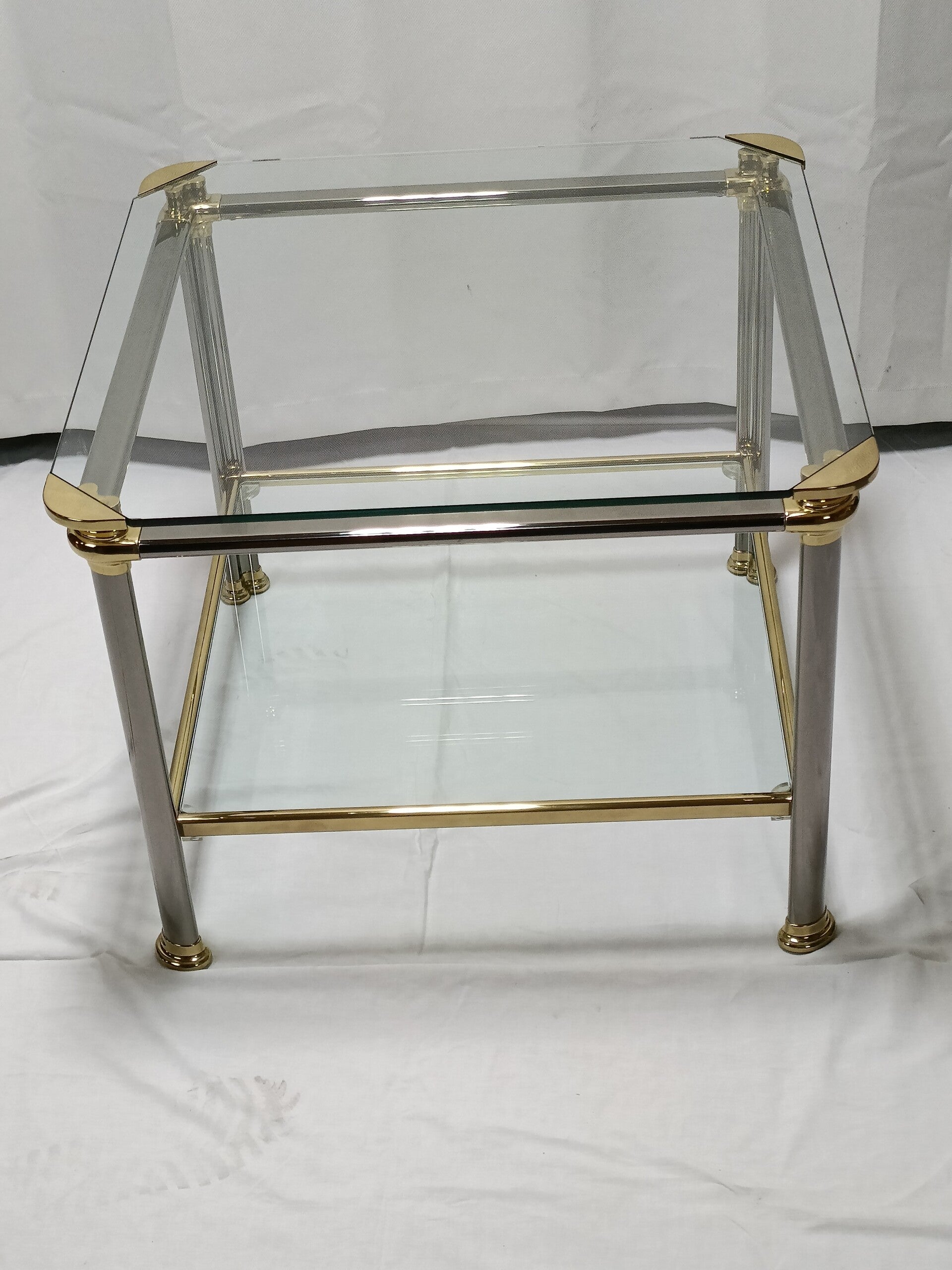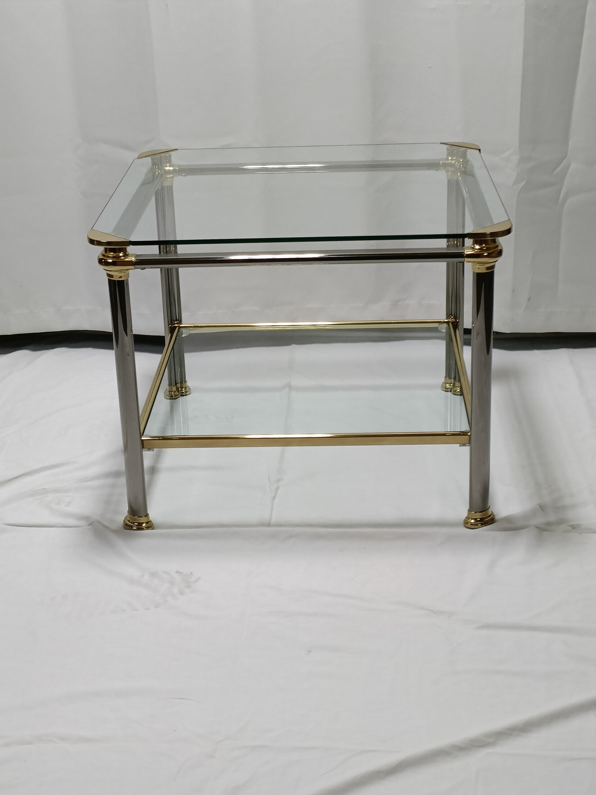 Table basse d'appoint Mara en laiton 2 plateaux en verre