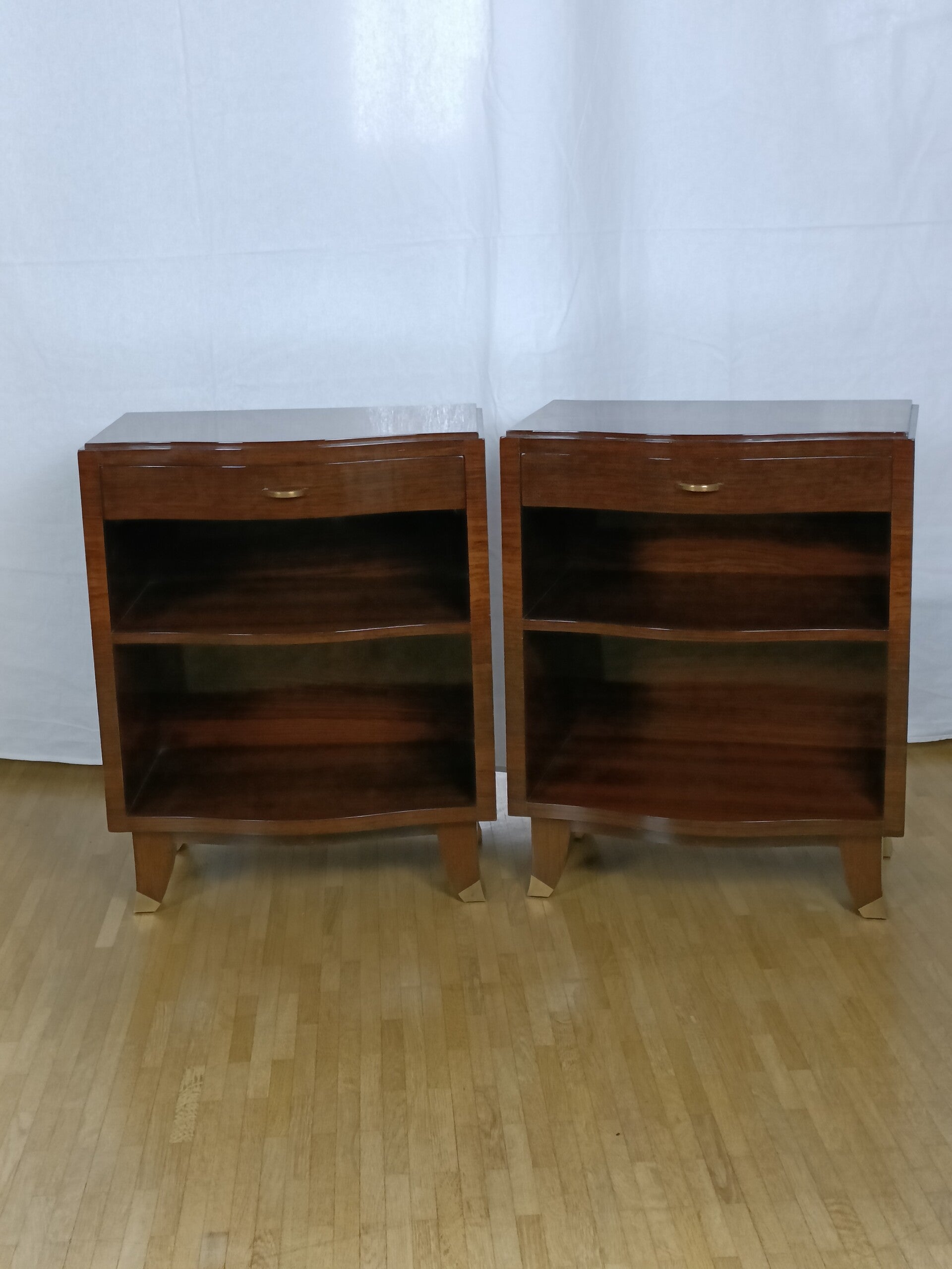 Paire de chevets en palissandre Art déco, pieds en laiton